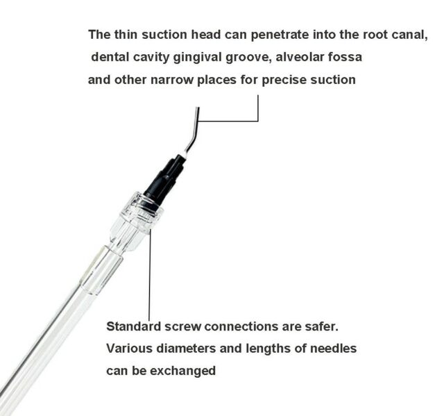 With a screw-in suction head, standard screw for easy connection of curved needles of various diameters.