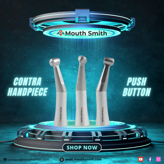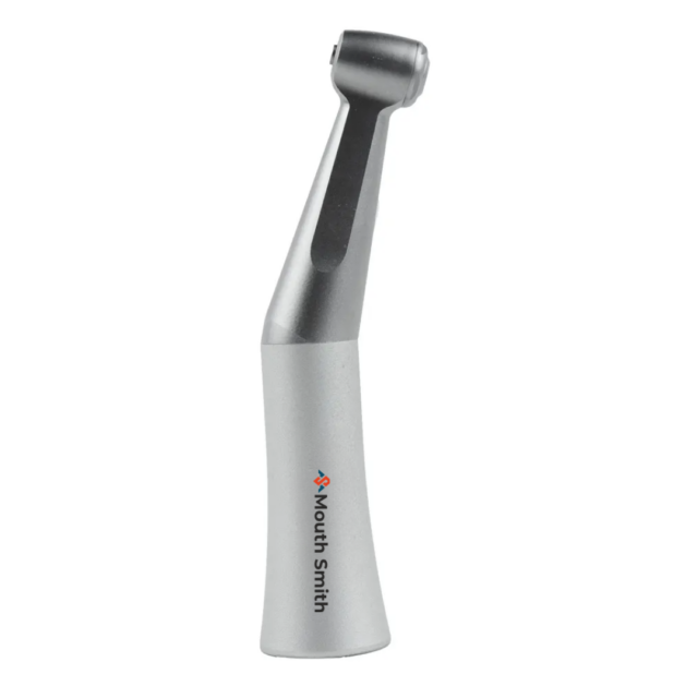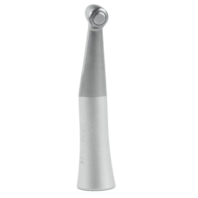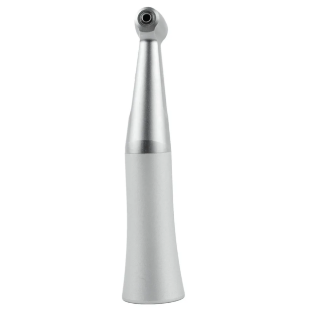1:1 Dental Low-Speed Contra Angle Handpiece with Push Button for FG 1.6mm Bur. Capable of reaching 20,000 RPM with an external water spray feature. Built to be sturdy and durable, and includes a six-month warranty.