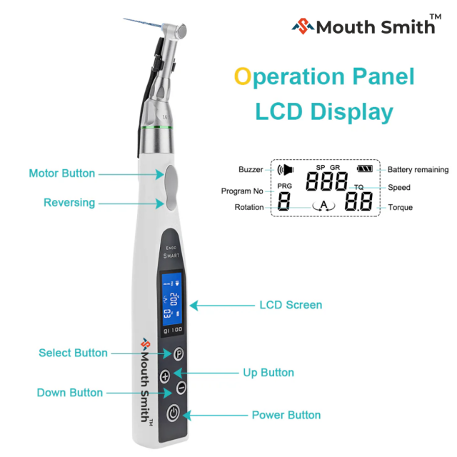 Mouth Smith Endo Motor  is an advanced endodontic tool designed to drive Ni-Ti instruments during root canal procedures. Utilizing micro-electron control technology, it helps dentists achieve more precise root canal shaping. This handheld, cordless device is rechargeable and designed to reduce the workload on dentists.
